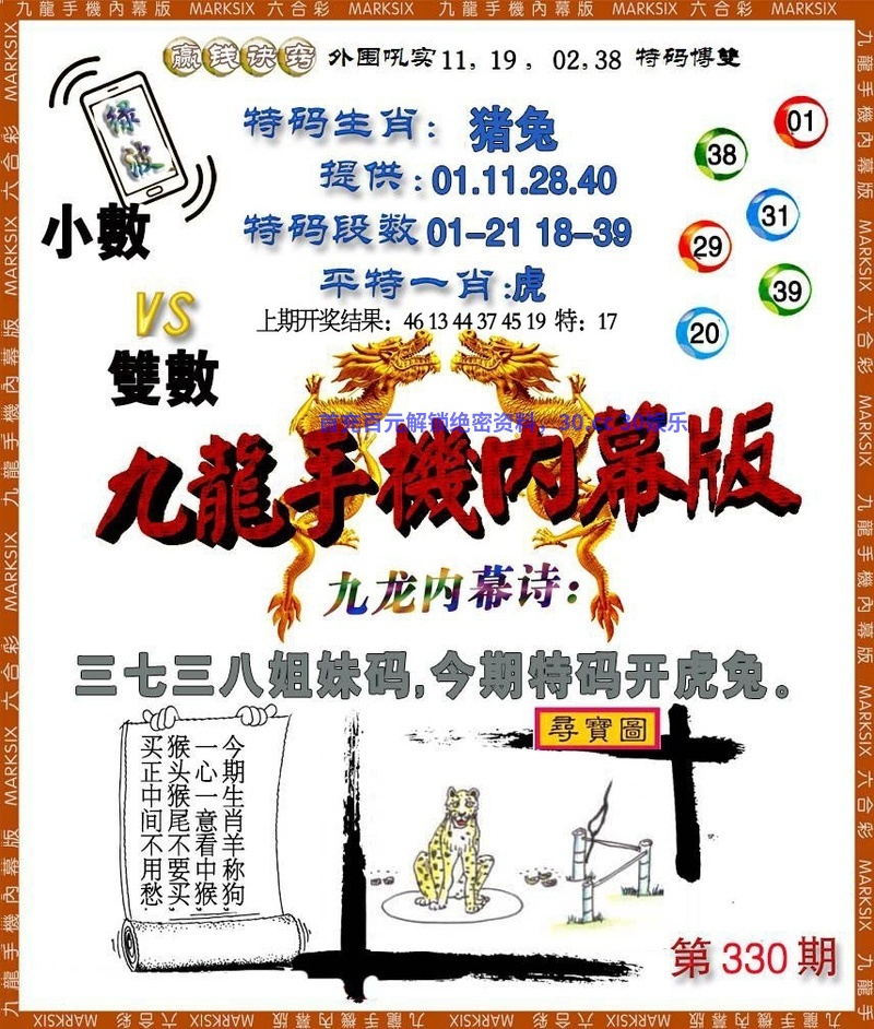 330期:七肖中特╠猪鸡虎兔猴龙╣开:马36准