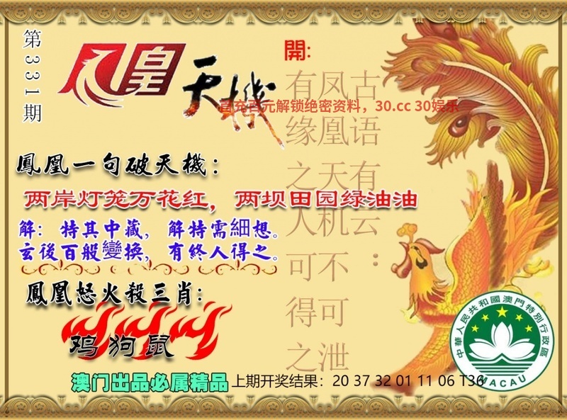 332期:平特一肖【鸡鸡鸡】开:發00中